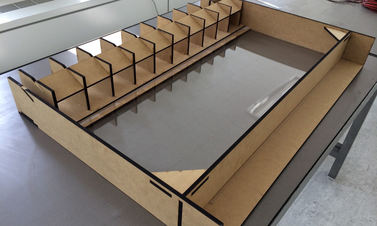 I use the laser cutting machine for making the real model. And this idea needs for covering behind something, I use the string curtain. I will test with this next time.